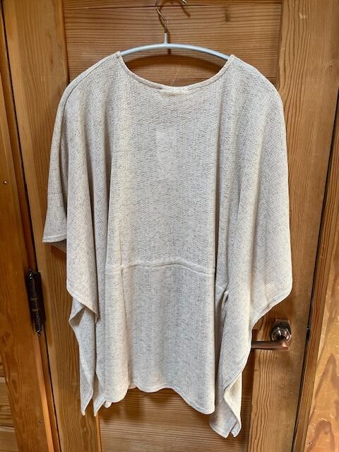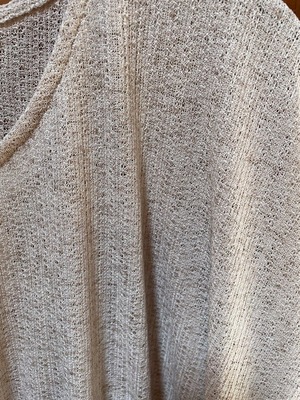 肌触りの良い透け感のあるニットソートップス。ウエストの紐でシルエットを調整でき、幅広い体形にフィットします。軽やかな素材感でリラックス感のある着こなしにぴったり。 カラー : ベージュ サイズ : 着丈 70cm 肩幅 100cm 素材 : ポリエステル94% 麻6%