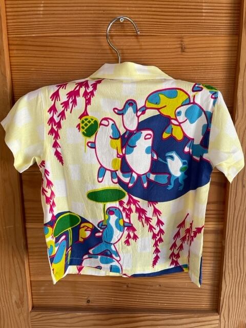 肌触りの良いレーヨン素材で通気性も抜群な子供サイズのシャツ。愛らしい動物たちが目を引くデザインで、江戸時代の浮世絵を子供らしくリデザイン。和柄のアロハシャツと親子コーデも楽しめます。ユニセックスで着用可能