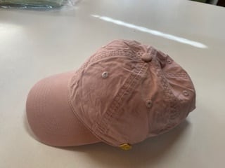 シンプルなデザインのくすみカラーのキャップ。落ち着いたカラーでやわらかな印象に。サイドに付いたメタルパーツがワンポイント。